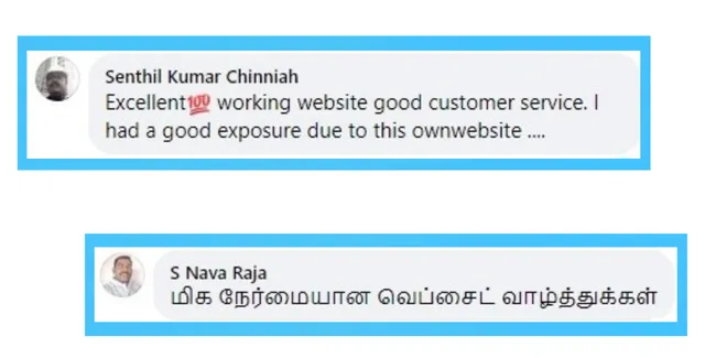 உங்கள் வெப்சைட்டை யாருடைய உதவியும் இன்றி, நீங்களே, வெறும் ஒரே நிமிடத்தில் செய்துகொள்ளும் வகையில் நம்ம publease.com வடிவமைக்கப்பட்டுள்ளது. அப்படி இருந்தும் எந்த நிலையில் உங்களுக்கு எங்கள் உதவி தேவைப்பட்டாலும், நம் அலுவலர்கள் உங்களுக்காக தமிழிலேயே பேச காத்திருக்கிறார்கள்.